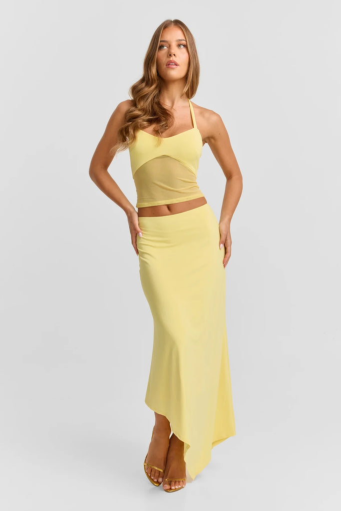 Make a bold statement with the Ivy and Lyra Maxi skirt. Featuring a modern asymmetrical hemline that adds dramatic movement, this piece is perfect for day-to-night styling. Crafted from our signature, soft jersey fabric, it hugs at the waist and falls effortlessly into a flattering silhouette.